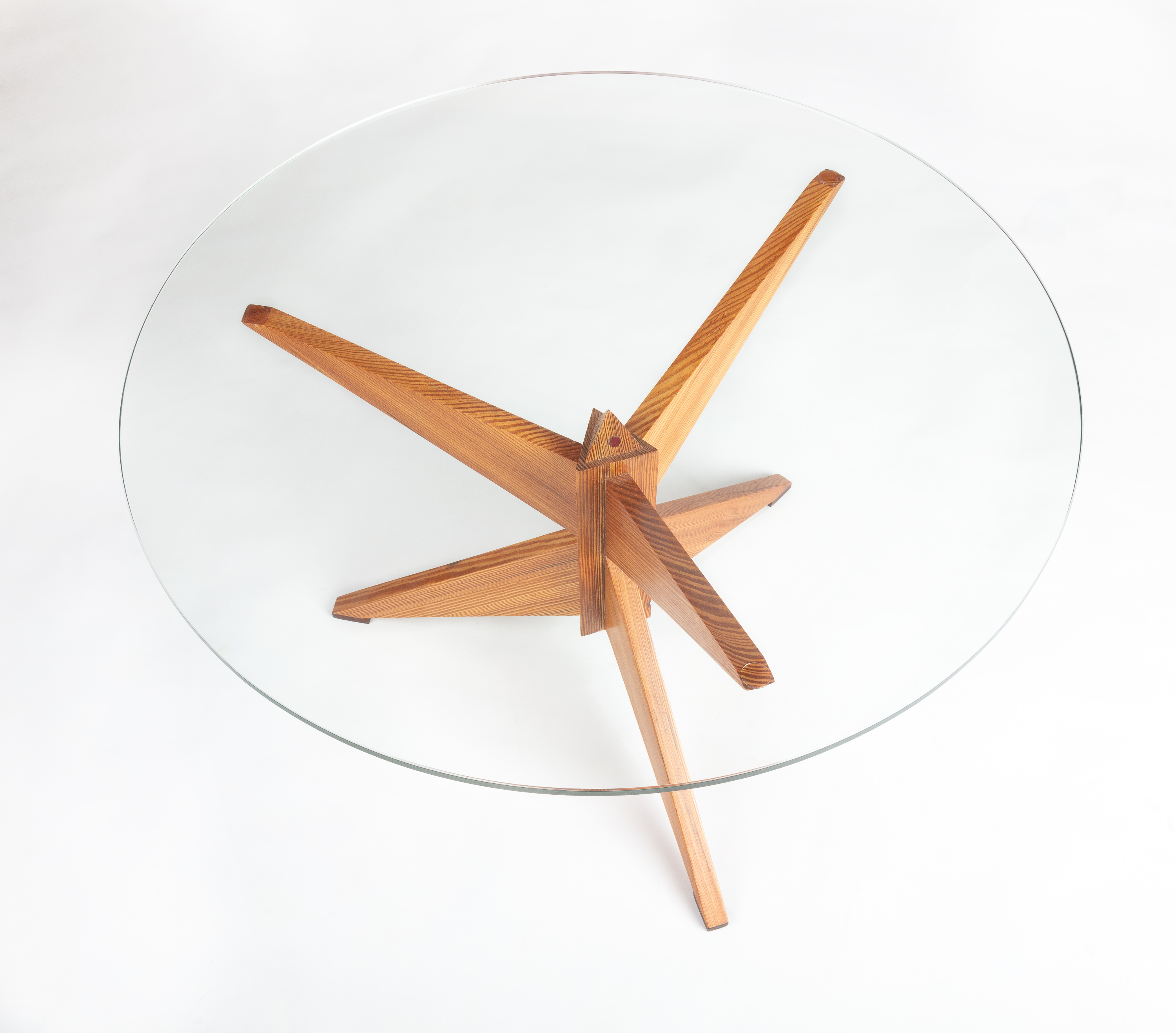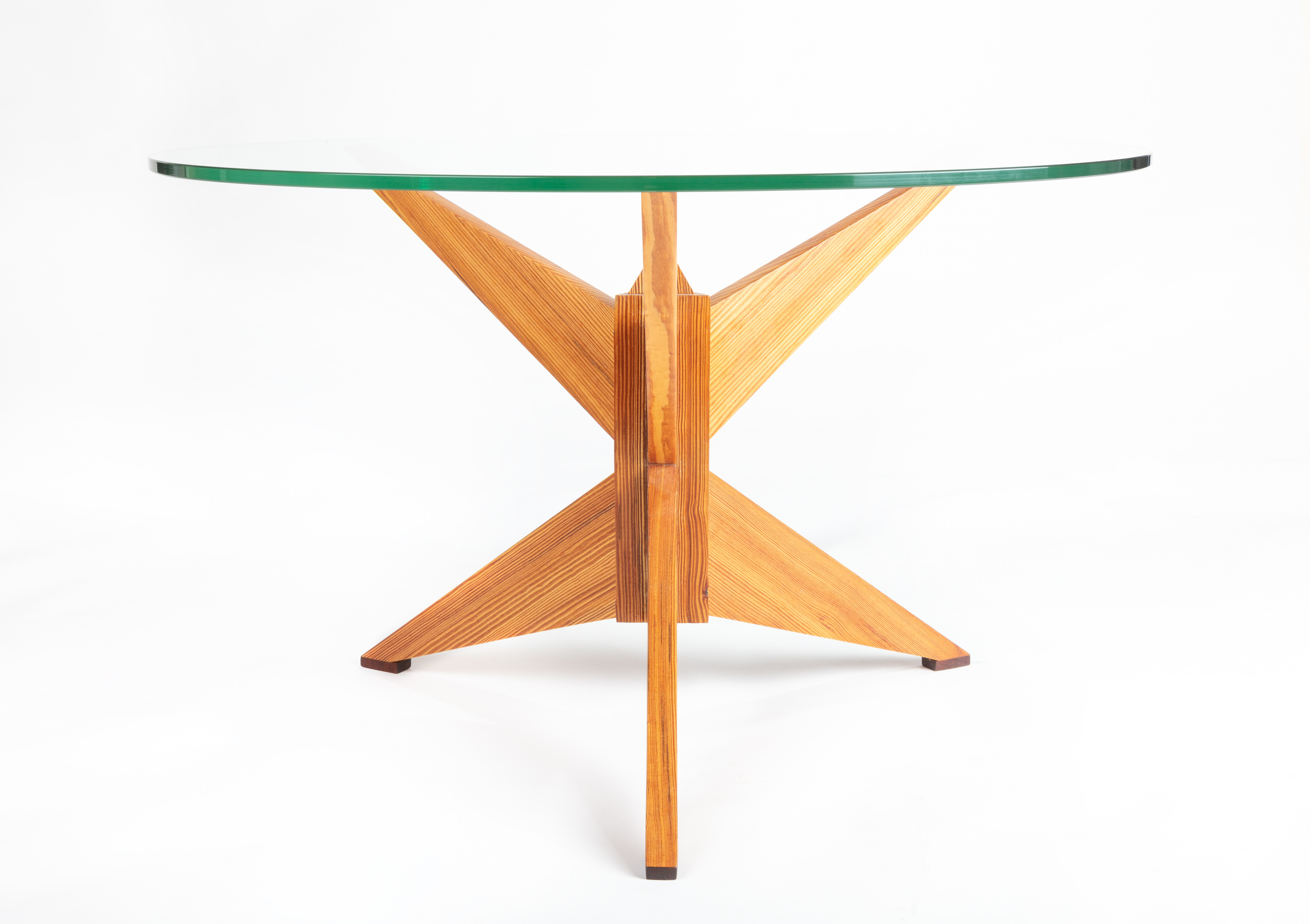 18.5"H x 28" Dia Glass MATERIAL: Antique Heart Pine Oil, Lacquer