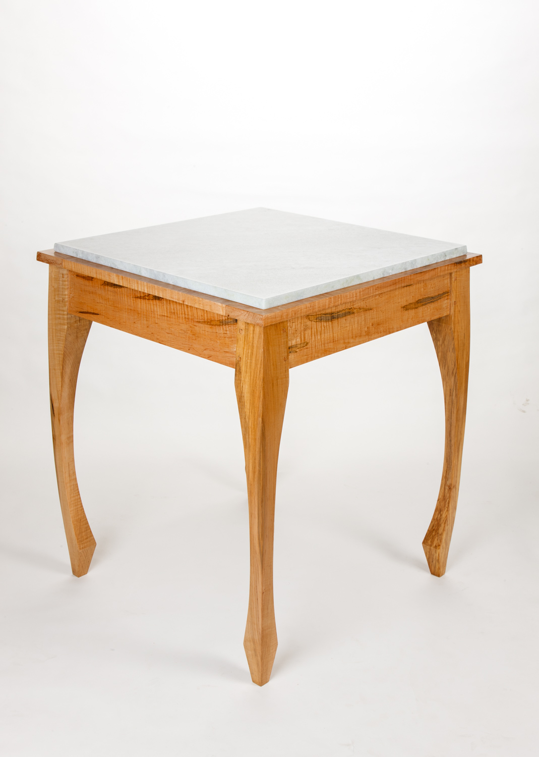 31"H x 26"W x 26"D MATERIAL: Curly Maple Ambrosia, Marble Oil, Lacquer