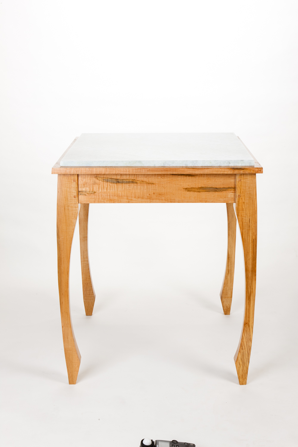 31"H x 26"W x 26"D MATERIAL: Curly Maple Ambrosia, Marble Oil, Lacquer